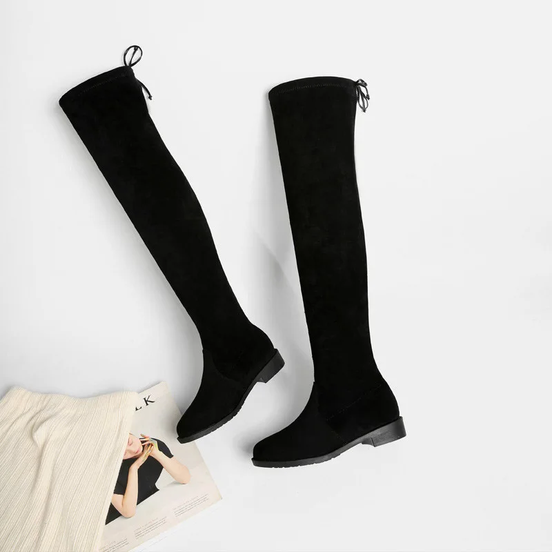 Cinessd Size 44 Women's Winter Over Knee Boots Women Black Slim Warm Shoes Flock Sexy Boots For Woman Elastic Botas Altas Mujer