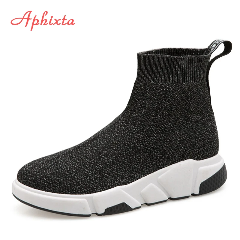 Aphixta Socks Boots Shoes Woman Height Increasing Platform Ankle Boots Sexy Booties Girls Student Shoes Letter Fashion Lady Boot