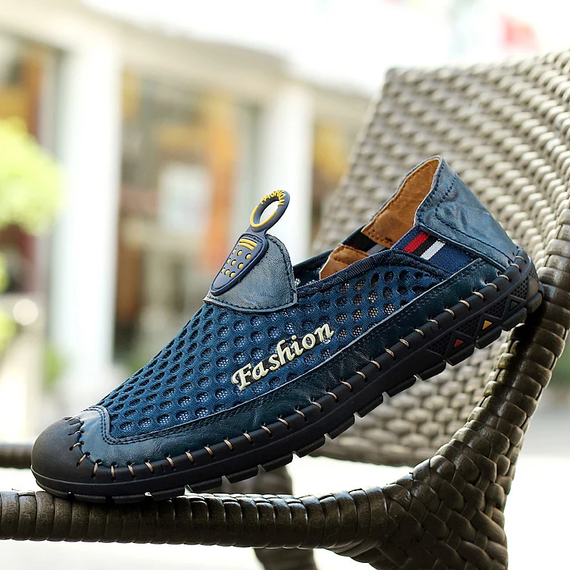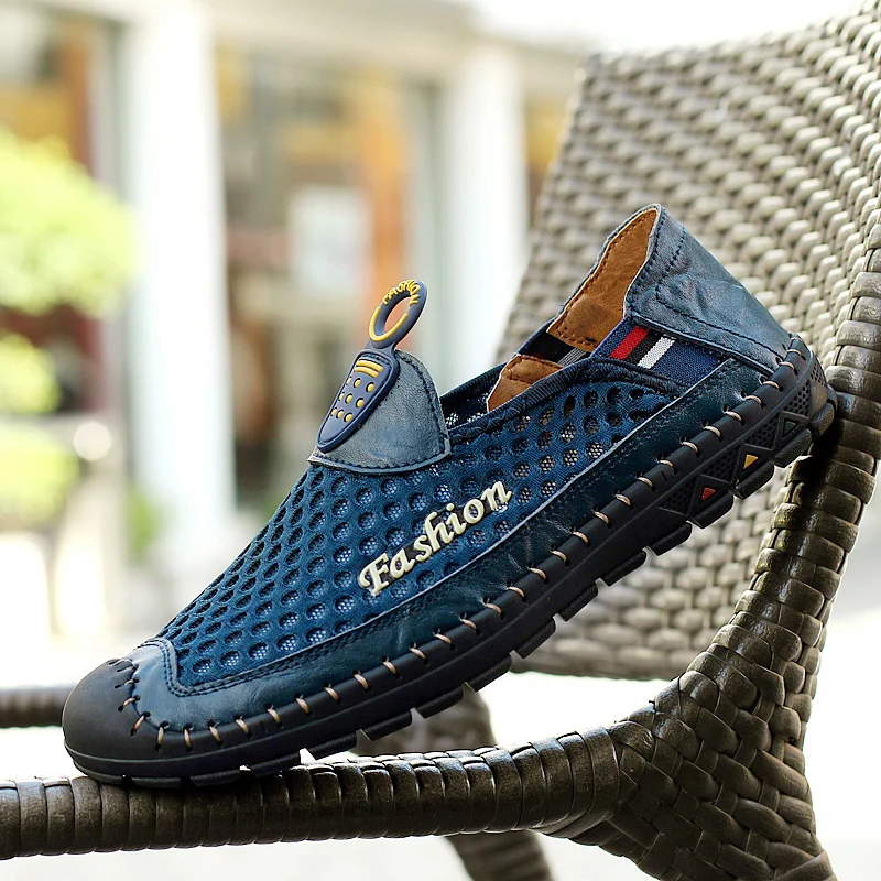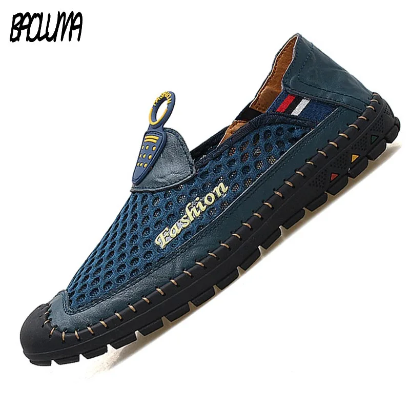 2018 Summer Breathable Mesh Shoes Italy Loafers Mens Casual Shoes Genuine Leather Slip On Brand Shoes Man Soft Comfortable 38-46