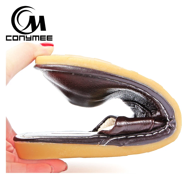 Conymee Winter 2018 Home Slippers Stylish Women's Leather Shoes Pantufas Winter Warm Women Indoor Flats Shoe Soft Floor Slipper