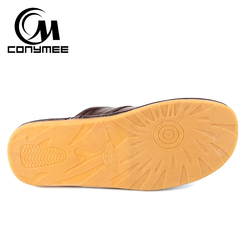 Conymee 2018 Summer Mens Genuine Leather Slippers Shoes Men Casual Sneakers For Home Beach Sandals Flip Flops Big Size Sandalias