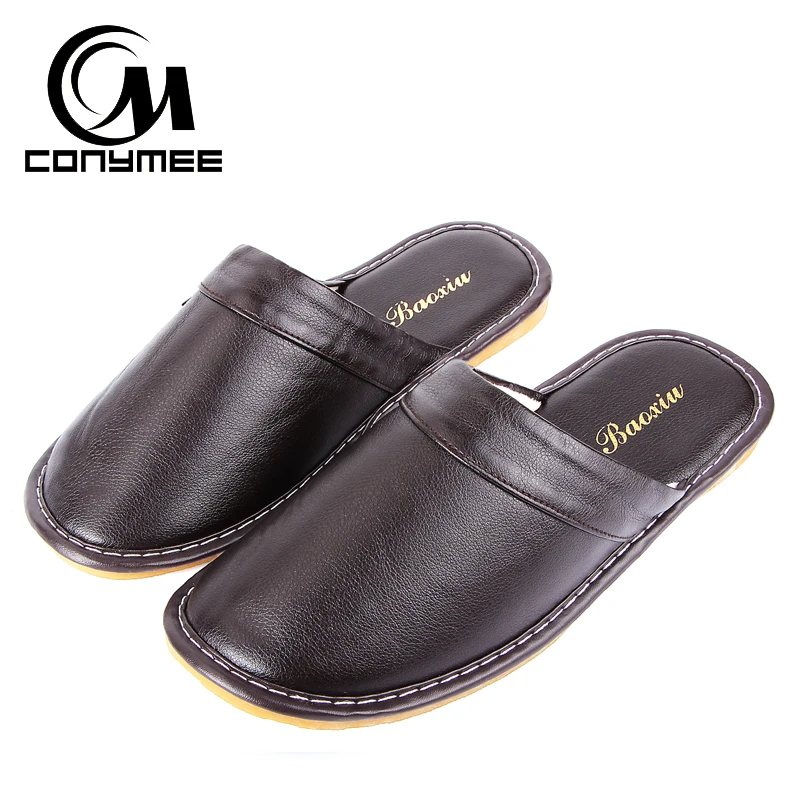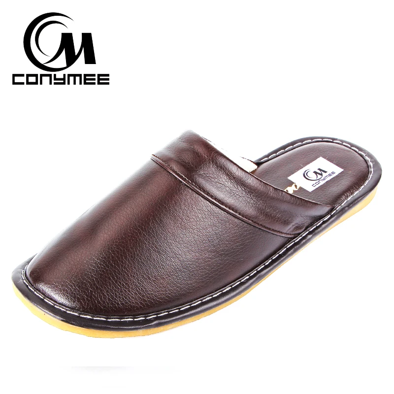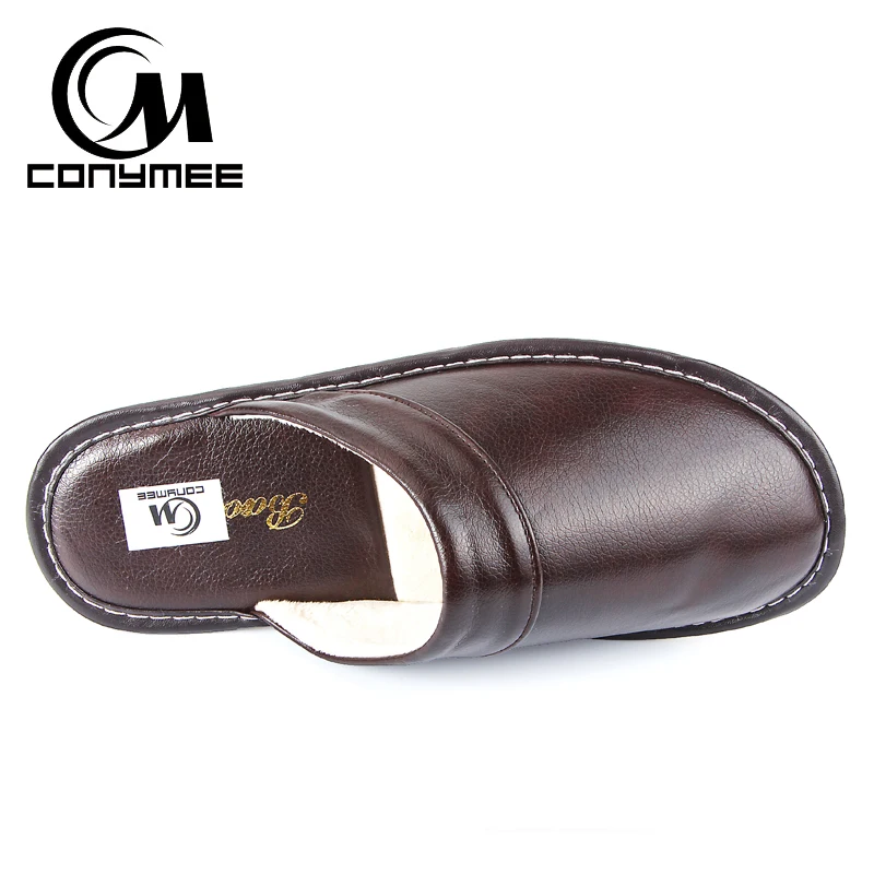 Limited Offer Conymee Winter Slippers Men Leather Shoes Casual Sneakers For Home Indoor Slipper Pantufas Non with Free Shipping Worldwide!