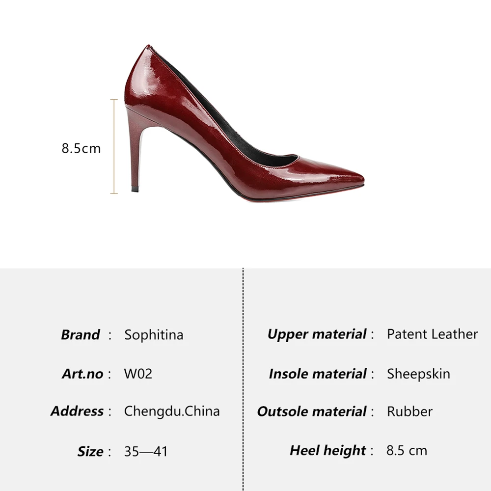 Limited Price Sophitina Elegant Pumps Bordeaux Patent Leather Thin Heels Pointed Toe Girl Wedding Pumps High with FREE Shipping Worldwide!