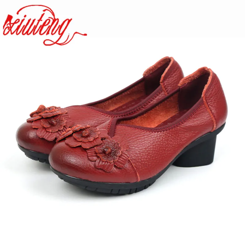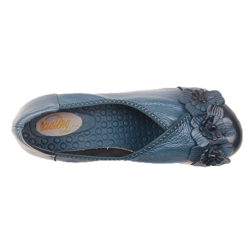 Xiuteng 2019 Handmade Flowers Women Shoes Flat Heel Leather Shoes National Wind Grain Leather Soft-Soled Shoes Women For Gifts