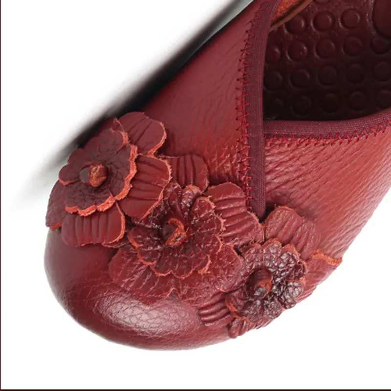 Glglgege Flowers Handmade Shoes Women's Floral Soft Flat Bottom Casual Shoes Folk Style Moccasins Women Genuine Leather Shoes