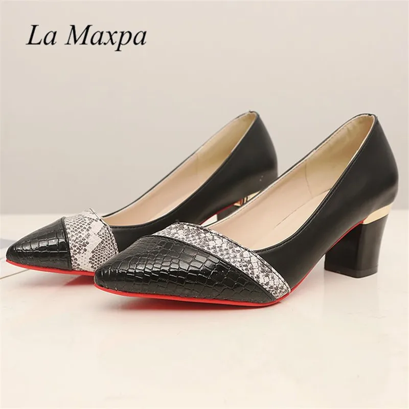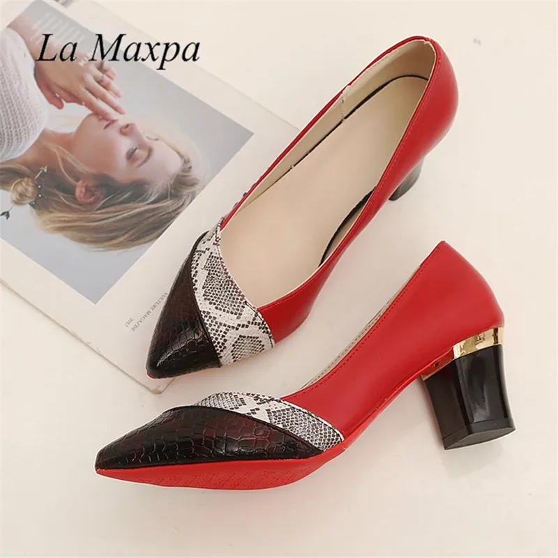 Special Price Womens Pointed Toes Pu Leather High Heel Pump Customized Snake Skin 6cm Thick Square Heels Office W with FREE Shipping Worldwide!