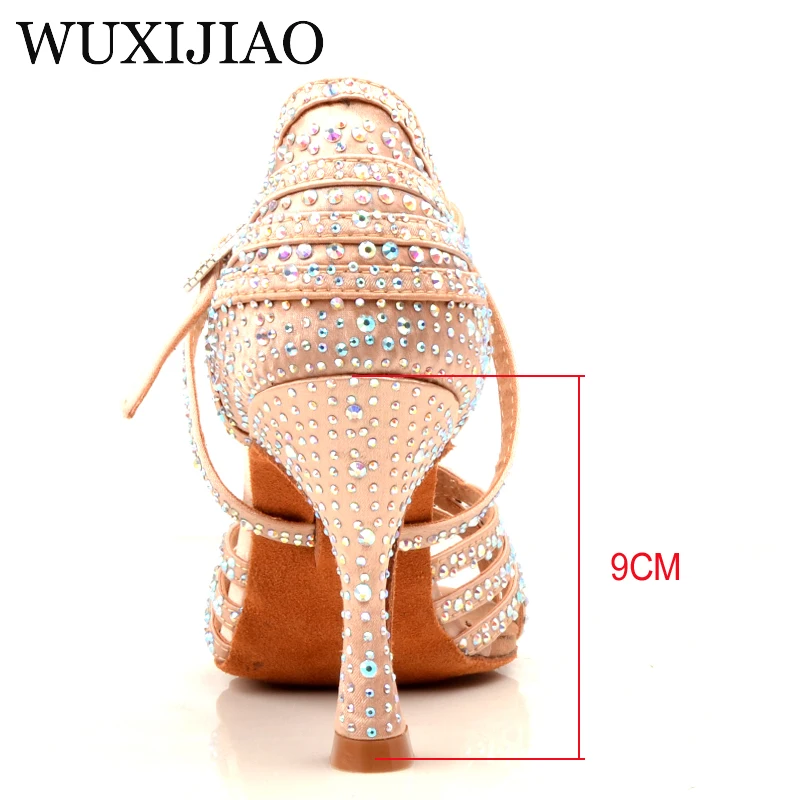 Wuxijiao Women Party Dance Shoes Satin Shining Rhinestones Soft Bottom Latin Dance Shoes Woman Salsa Dance Shoes Heel5cm-10cm